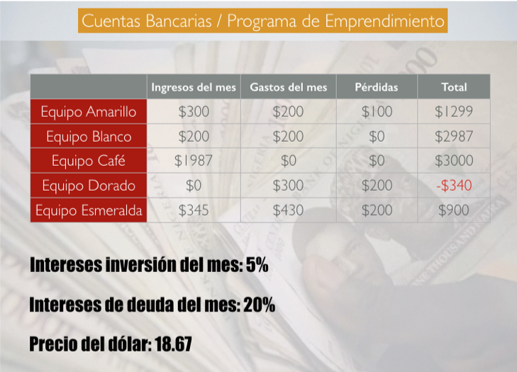 En el transcurso del año, ocurren varias etapas en donde los distintos equipos van probando y mejorando su proyecto, para lo que se generan experiencias como una presentación semestral ante sinodales con conocimientos sobre el tema emprendedor; una Feria Eco-Creativa, en la que exponen su proyecto utilizando materiales de reúso y sin gastar más de $100 pesos en el montaje de su stand; y una presentación final de proyectos del ciclo escolar. También se ha participado en el concurso nacional The Master Startup y en el internacional The Masters, que se efectúa en Inglaterra.